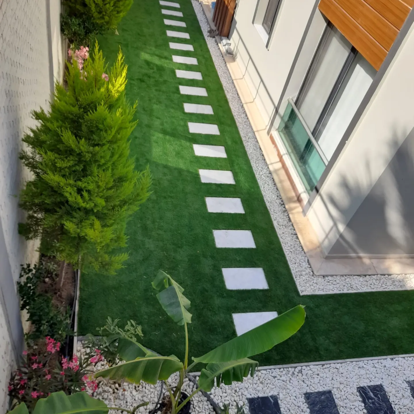 Yapay çim halılar; yazın sararmaz, kışın çamur olmaz. Mevsim koşullarından etkilenmeden yıl boyunca canlı ve düzenli bir görünüm sunar. Özellikle yoğun güneş alan alanlarda solmaya karşı UV dayanımlı seçenekler tercih edilebilir.